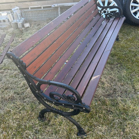 Renoverad Norrahammars Bruk parkbänk gjutjärn grön 160 cm