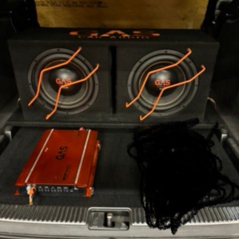10" baslåda med en Orion bas och ett GAS monoblock.