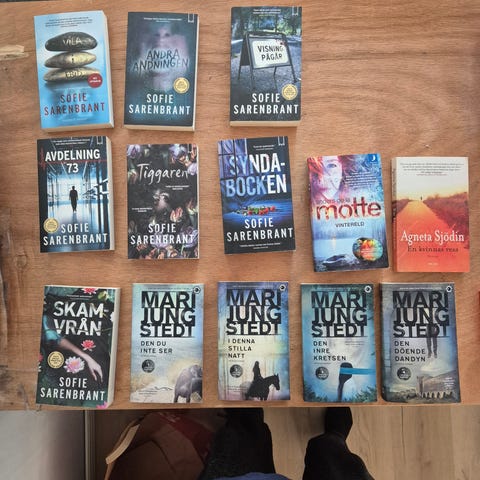 Paket med 6 pocketböcker i genren deckare/kriminalroman av blandade författare. I paketet ingår bland annat titlar som "Det svarta tornet" av P.D. James, "Dödsmässa" av Arne Dahl, "En lek med eld" av Peter Robinson och "Dödsdomen" av Val McDermid. Böckerna är i pocketformat och på svenska. Lämpliga för den som vill läsa kriminalromaner av olika författare i ett samlat paket.