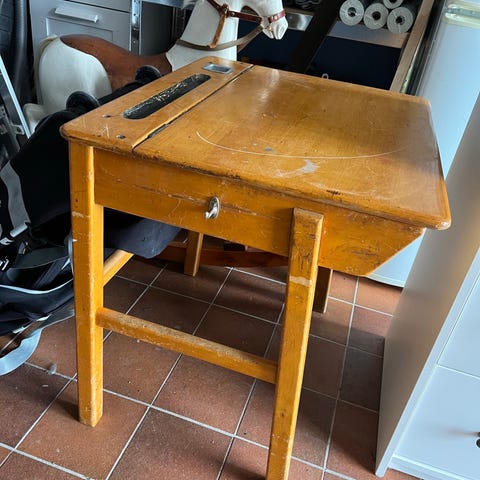 En gammal men fin skolbänk från 1940-talet. Använd men stabil.