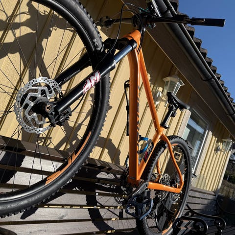 Köptes sommaren 2024 och det är en mycket bra mountainbike som är bra på vägen och kör utmärk på asphalt. Den var serverad nyligen och har inte bytt ut några delar. Den har några repor men inget som förstör. Säljer den eftersom det är dags att uppgradera.