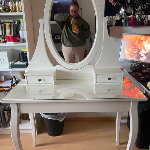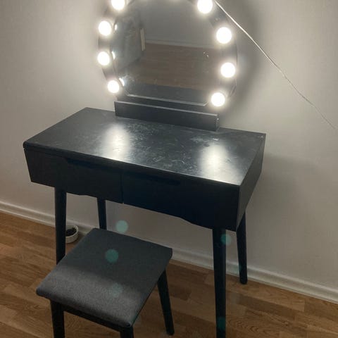 Säljer dotterns skrivbord/sminkbord som ett set. Ingår följande (lampor ingår ej):