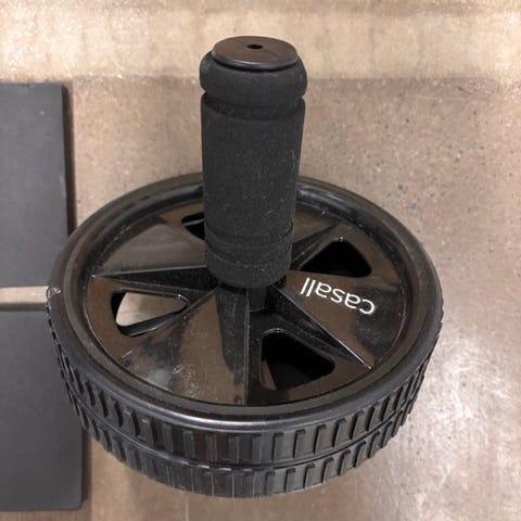 Roller Slide maghjul träningsredskap i blå färg. Träningsredskapet är avsett för mag- och bålträning genom rullande rörelser framåt och bakåt. Handtag på sidorna ger grepp vid övningarna. Levereras med knämatta för stöd vid träning på golv. Passar för hemmaträning av överkropp och bål för vuxna användare.