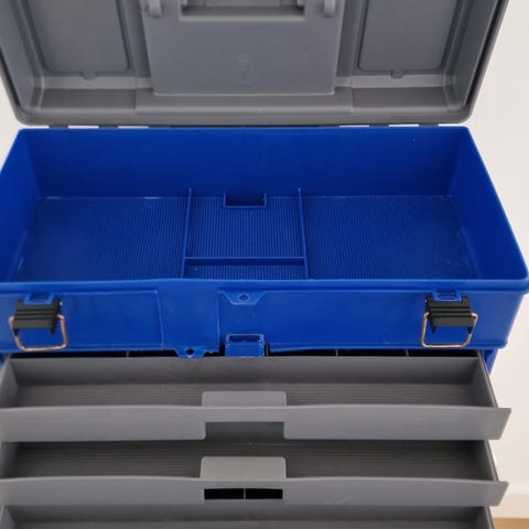 Fiskeväska med flera fack tillsammans med fiskedrag i olika storlekar och färger. Till utrustningen hör flera fiskespön i olika längder samt tre haspelrullar. Uppsättningen lämpar sig för allroundfiske. Säljs som ett paket och inte delar.