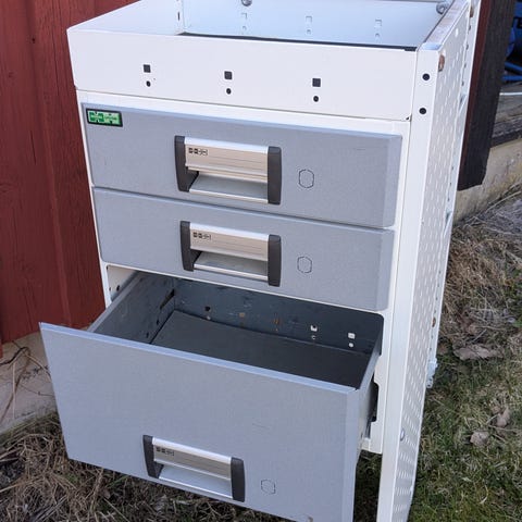 Säljer två rejäla verktygsskåp från Lista. Mycket hög kvalitet och byggda för att tåla tung belastning – perfekt för verkstad eller garage.