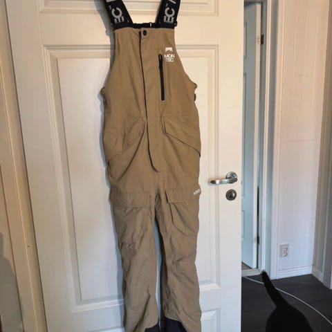 Säljer ett par grymma skalbyxor, vind- och vattentäta, extremt slitstarka, andningsförmåga pga ventilationsdragkedjor längs hela benen, hängslen, förstärkta knän och benslut, snölås, många bra fickor, endast använda en gång! Dam, stlk M.