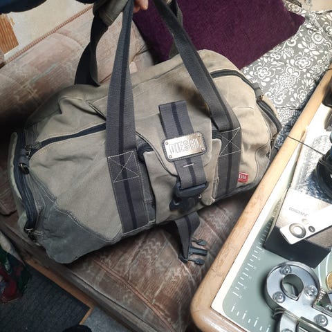Duffelväskan har ett praktiskt teleskophandtag med två skenor. Dessutom finns det ytterligare handtag både på toppen, sidan och i botten.