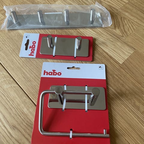 2 st toaborstar, dricksglas+hållare, toapappershållare. Helt nya, aldrig använda.. Allt i sin original förpackning..