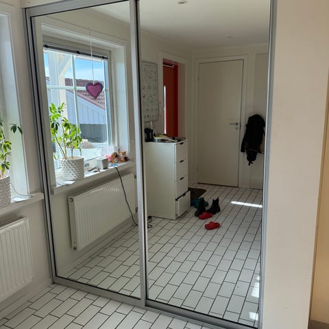 Garderob med 3 x 80cm stora spegeldörrar o 256cm höga .
