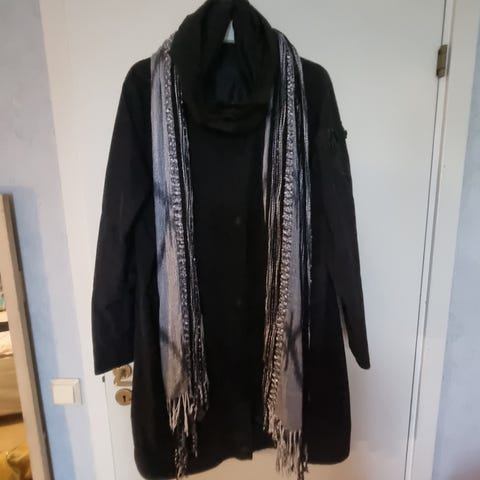 Mörkblå morgonrock med ett färgglatt randigt mönster på kragen storlek M-L. Morgonrocken har ett knytband i midjan. Nypris:849kr.