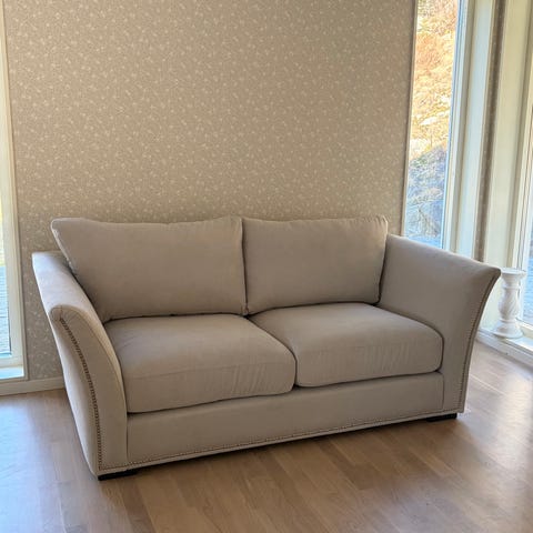 Fin soffa som är 210 cm bred. Du kan själv välja vilken sida divanen skall vara på. Katt finns i hemmet.