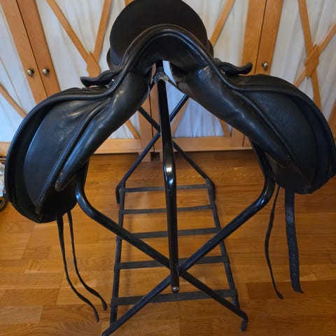 Sadeln har djup sits och bra stöd, vilket ger en stabil och bekväm ridning. Passar ryttare som behöver större sits samt hästar med bredare rygg.