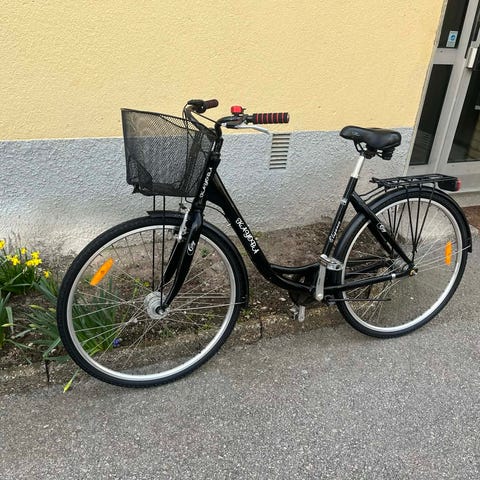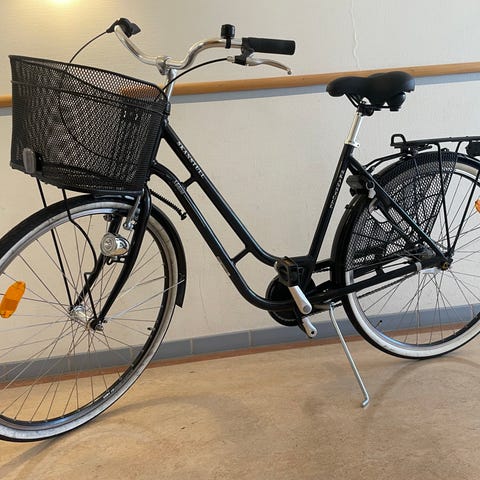 Detta är en perfekt citycykel med lågt insteg som gör den mycket smidig att kliva av och på. Den är utrustad med en korg fram och pakethållare bak, vilket gör den idealisk för både pendling och storhandling.