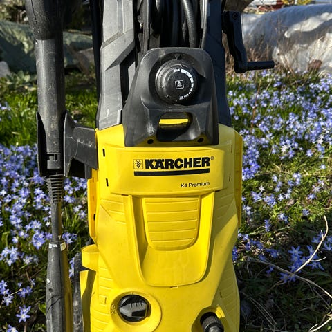 Högtryckstvätten levereras med sprutpistol och slang enligt bild. Lämplig för rengöring av till exempel uteplats, fordon och trädgårdsredskap beroende på behov och tillbehör som används.