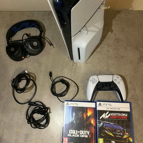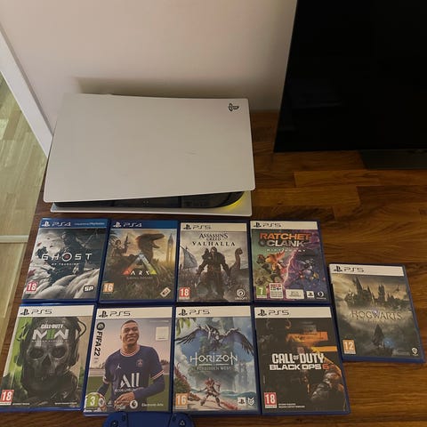 SÀljer ett komplett PlayStation 5-paket i mycket fint skick. Perfekt för dig som vill slippa köpa till extra lagring, kontroller och spel.
