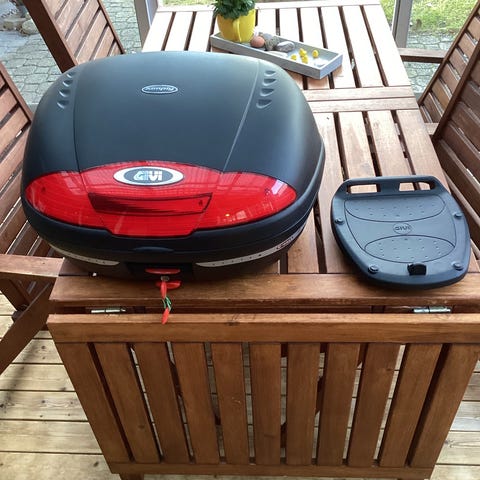 En av dom större toppboxarna med botten platta med fäste. Liten box följer med.