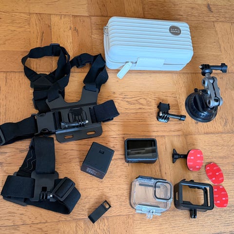GoPro session 4. Paketet innehåller sele för montering på kropp samt olika fästen och skruvar för att kunna montera en GoPro kamera på till exempel hjälm eller annan utrustning. Passar för actionfilmning och dokumentation vid sport och friluftsaktiviteter där kameran behöver sitta stabilt fastmonterad. Den är väldigt liten och kompakt. Skriv gärna om ni har några frågor!