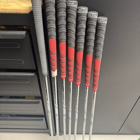 Midsize grepp på 4-pw och 3 i standard size. Ett välskött järnsett som jag säljer, ända är 6:an som har ett litet märke på men inget som påverkar spelet, allt annat är märken som kommer med åren.