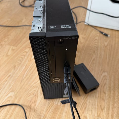 Dell stationär dator i kompakt format. Hölje i svart färg med frontanslutningar för bland annat USB och ljud. Datorn är utrustad med Intel-processor enligt märkning på chassit. Nätadapter och strömkabel ingår enligt bild. Lämplig som kontorsdator eller för enklare hemanvändning där ett litet stationärt system önskas.
