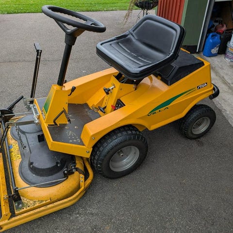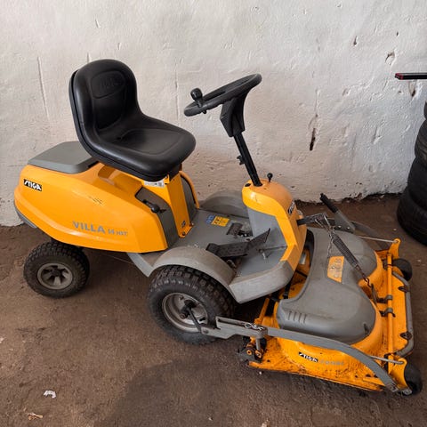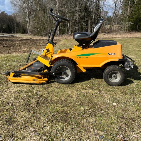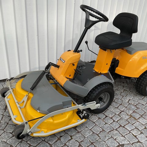 Stiga Ready, bensindriven åkgräsklippare. Modellen har frammonterat klippaggregat. Maskinen är utrustad med förarstol med ryggstöd och enkel rattstyrning. Lämplig för klippning av gräsmattor och andra ytor där en åkgräsklippare underlättar arbetet.