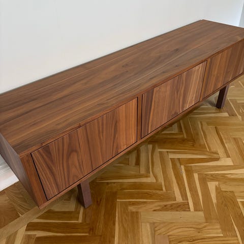 Finns tillhörande skåp, spegel och satsbord/ soffbord