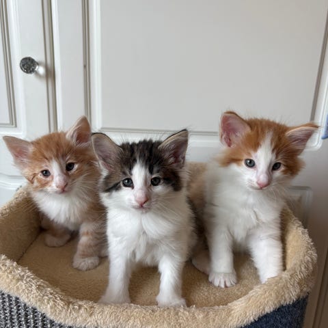 Alla går på lådan och är rumsrena, äter torrfoder och ibland mjukmat.