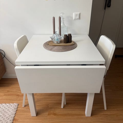 IKEA utdragbart matbord i mörkbrunt trä.