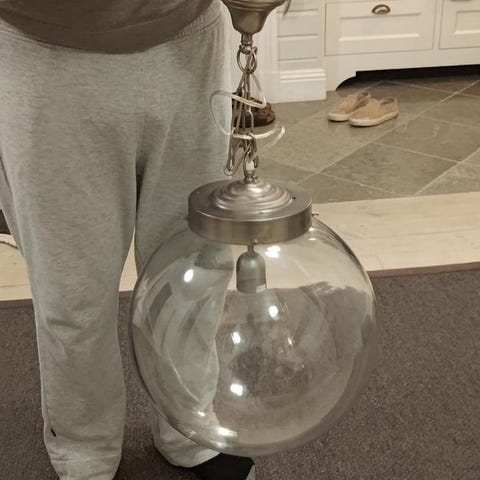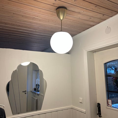 Taklampa i vitt glas, ca 17 cm i diameter.