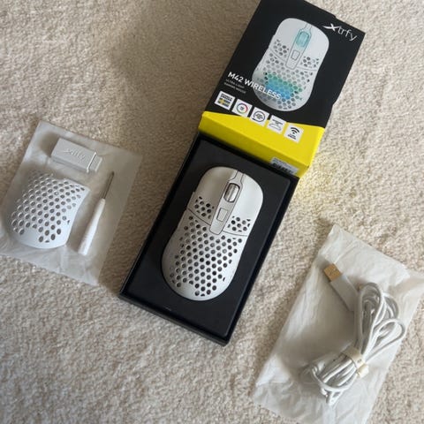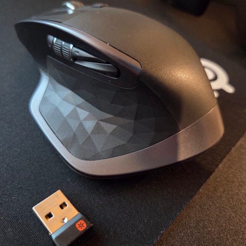 Trådlös optisk datormus i svart och grått. Musen har scrollhjul och flera knappar på ovansidan samt sidorna. USB-nanomottagare ingår och förvaras i facket på undersidan av musen. Passar för användning till stationär dator eller laptop med ledig USB-port.