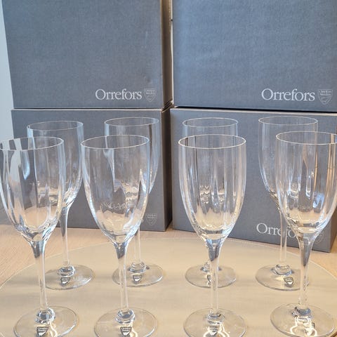 9 stycken Kosta Boda Chateau vinglas designade av Bertil Vallien. Glasen rymmer 20 cl.