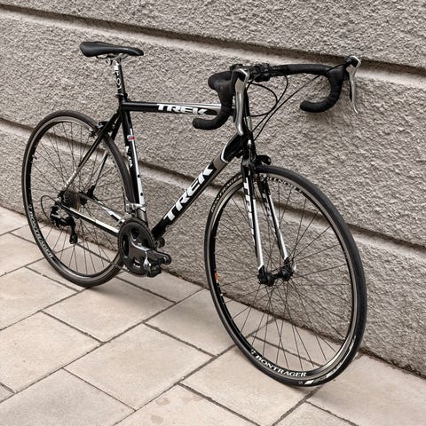 Landsvägscykel från 2013 med ramstorlek ca 50 cm och 28"/700c-hjul. Helt i kolfiber och Shimano 105 komponenter. Rakt styre (orginalstyre skickas med) växelsystem kassett anpassad för landsvägskörning. Pedaler SPD ingår.