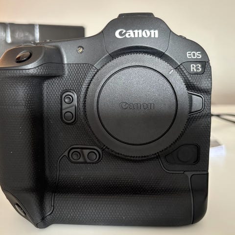 Canon EOS R6 Mark II digital systemkamera i svart utförande. Spegellös fullformatskamera i EOS R-serien med RF-fattning. Kamerahuset har vridbar och vinklingsbar LCD-skärm samt elektronisk sökare. Utrustad med flera funktions- och inställningsreglage på baksidan för snabb hantering. Passar för både foto och video med kompatibla RF-objektiv eller EF-objektiv via adapter. Levereras enligt bilder med originalkartong EOS R6 Mark II.
