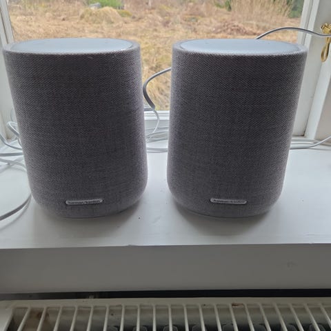 Högtalarna fungerar utmärkt och är i mycket fint skick. Stilren design och riktigt bra ljud, perfekta för dig som vill ha både snygga och välspelande högtalare i hemmet.