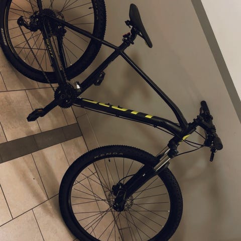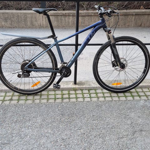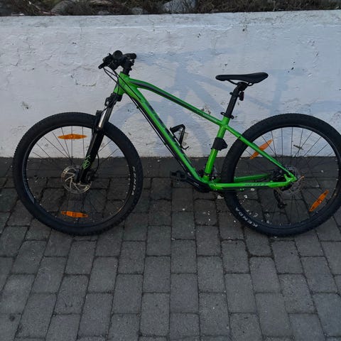 Ghost Kato mountainbike för unisex med ramstorlek M och 29" hjul. Cykeln har en hård framgaffel med dämpare, skivbromsar och grovmönstrade däck anpassade för terrängkörning. Lämplig för cyklister med längd enligt märkning på ramen (M 165–180 cm).