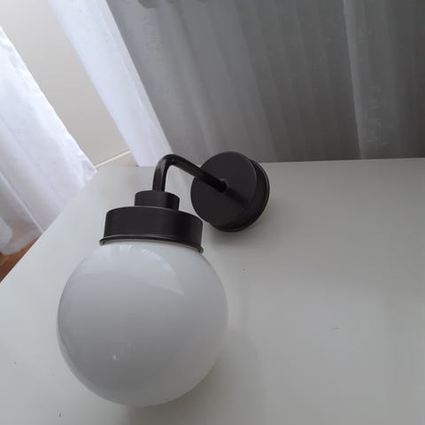 Säljer en stilren vägglampa från IKEA (modell FRIHULT) i rostfri/stål-look med frostat glas. Passar perfekt i badrum, hall eller som sänglampa.