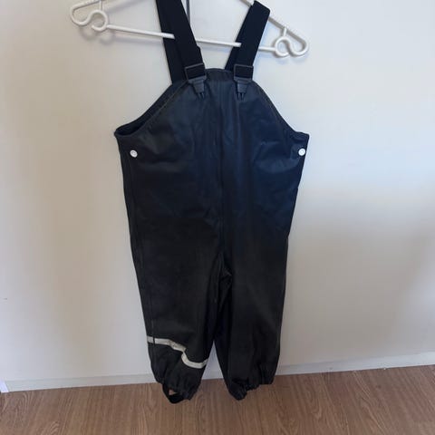 Polarn O. Pyret skalbyxa för barn i storlek 110. Svart färg och tillverkad i polyester. Modellen är unisex och har hängslen samt resår nedtill vid bensluten. Passar som ytterplagg för barn i ungefär storlek 110.