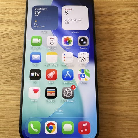 Mycket bra skick, nära nyskick. Inga kantstötningar eller andra skador. En mindre repa på skärmen, men den är knappt synlig vid normal användning. Batterihälsa är 91 %.