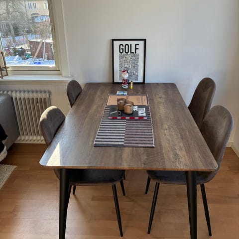 Säljer mitt matbord som är 1 år gammalt. Finns två märken se bild. Står i Falkenberg just nu kan tas med till Varberg Matbordet är Santos nypris 4800kr. måtten är 180x90x75cm