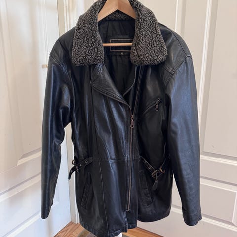 Svart välvårdad tuff läderjacka säljes (ytterligare herrjacka, i imitations läder kan komma med på köpet)