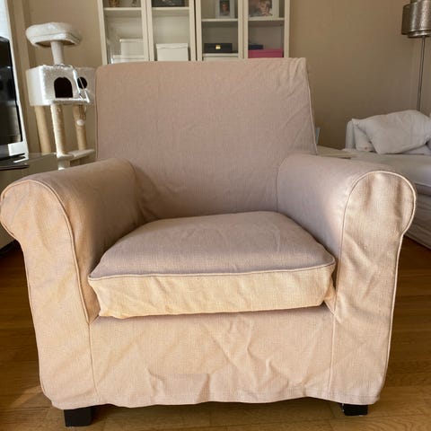 Säljer en fin och bekväm IKEA Ektorp fåtölj med randig klädsel. Klädseln är precis nytvättad och fåtöljen kommer från ett rökfritt hem (katt finns i hemmet