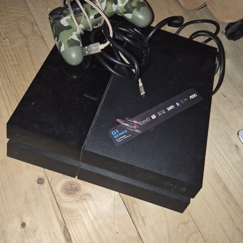 Playstation 4 handkontroll i svart färg tillsammans med två PS4-spel. Spelen är Baja: Edge of Control HD och Call of Duty: Modern Warfare Remastered. Handkontrollen är trådlös med två analoga styrspakar, styrkors, axelknappar och inbyggd pekplatta. Passar till Playstation 4-konsoler och används för spelstyrning i olika typer av spel.