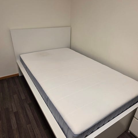 Mina hus kamrater flyttade ut och lämnade en 120cm säng som bara står och väntar på sin nya ägare. Användes ca 6 månafer, så klart med bäddmadrass på