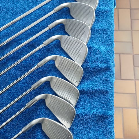 Winn dri-tacgrepp på fem av klubborna i bra skick. Golfpridegrepp på 7:an i bra skick