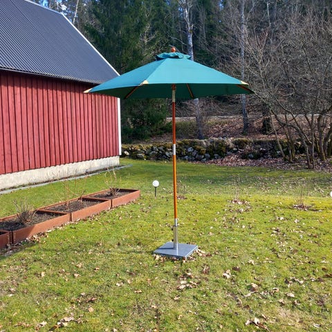 Säljer ett fint vitt hängparasoll i bra skick, knappt ett år gammalt.