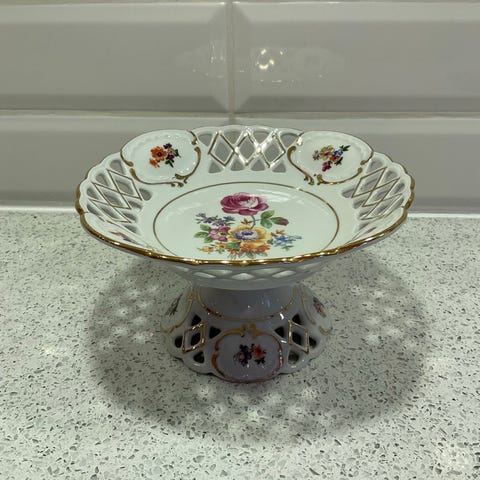 Jag säljer här en stor fruktskål från Bernardo. Skålen har en fin rosmotiv. Skålen är 50mm högt och har en diameter av 33 cm max. Kollar gärna mina andra annonser. Jag har flera ute med glas, porslin eller bestick m.m. Där finns även mindre skålar med samma motiv och tillverkare.