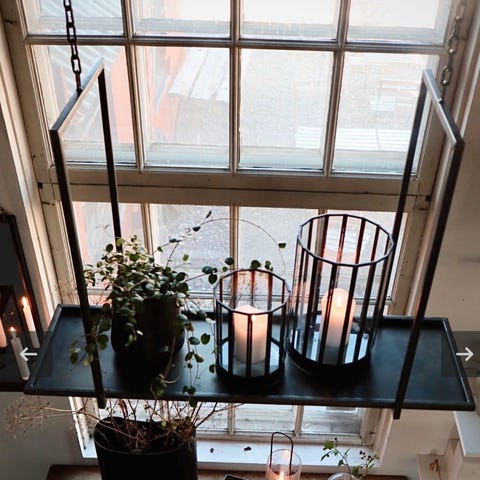 Ellos vägghylla i vitmålat trä. Består av konsoler och hyllplan som monteras på vägg. Hyllan ger plats för förvaring och exponering av till exempel böcker, dekorationer eller köksdetaljer.