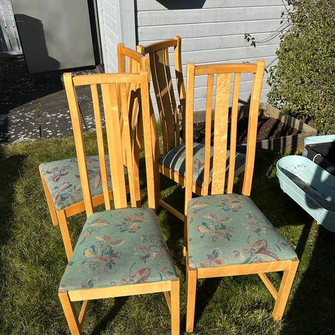 2St matstol trä med blå sits
