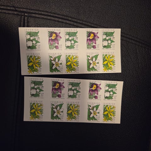 Varje frimärke är 22kr