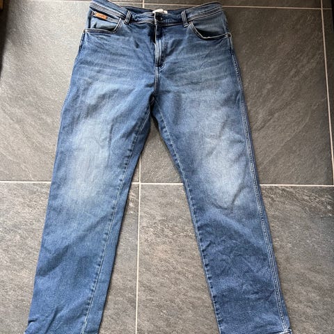Wrangler ljusblå jeans i nyskick säljes för 199kr. Rak modell och låg passform i storlek 34. Finns i Strängnäs/ Eskilstuna men kan även skickas. Billigare vid snabb smidig affär