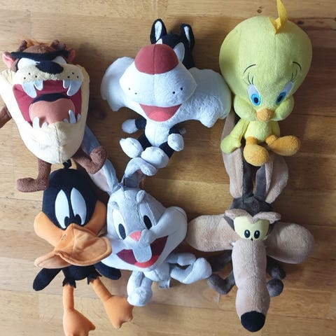 Pelle Svanslös + Cheshire Cat från Alice i Underlandet + Björn från Skansen + Känguru & Uggla från Nalle Puh + Barbapappa. 8 Gosedjur totalt.